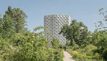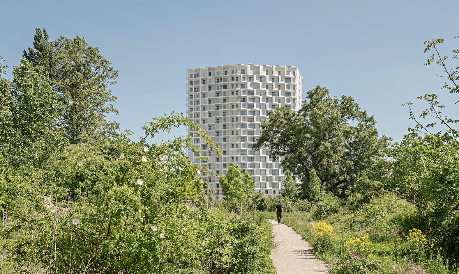 Leywand in Wien-Leopoldstadt steht für eine Wohnform der Zukunft: ein Hochhaus von hoher Architekturqualität, das gemeinschaftliche, öffentliche und private Freiflächen schafft. Der Entwicklungsprozess war vom Städtebau bis zur Qualitätssicherung vorbildlich. Wohnhochhäuser sind ein Beitrag zum sparsamen Umgang mit der Ressource Boden. Das Projekt löst die Sockelzone mit einem öffentlichen Vorplatz exzellent, bietet vielfältige Gemeinschaftsflächen und überzeugt mit Details wie der Ausformulierung der Balkonbrüstungen. Ihre strickmusterartige Struktur dynamisiert die Fassade, schafft private Freiflächen, stiftet Identität und löst die Baumasse optisch auf.