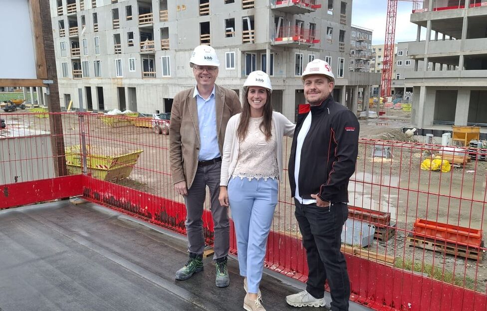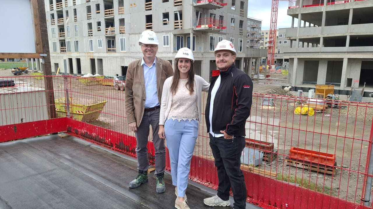 (v.l.n.r.): Michael Freudenthaler, Planer KIBB Immobilien; Birgit Müllner, Projektleiterin KIBB Immobilien; Florian Hug, Bauleiter Strabag AG;