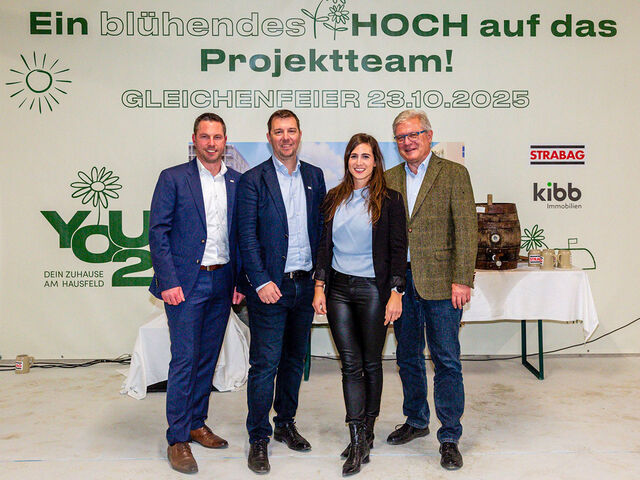 Am 23. Oktober wurde ein bedeutender Meilenstein beim Bauprojekt YOU2 gefeiert: die Gleichenfeier. Dieser traditionelle Moment markiert den Abschluss der Rohbauarbeiten und ist ein Symbol für Fortschritt, Teamarbeit und die erfolgreiche Zusammenarbeit aller Beteiligten. Im feierlichen Rahmen bedankten sich die Projektverantwortlichen bei allen Handwerker:innen, Partnerfirmen und Unterstützer:innen, die zum bisherigen Erfolg beigetragen haben.