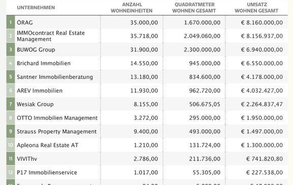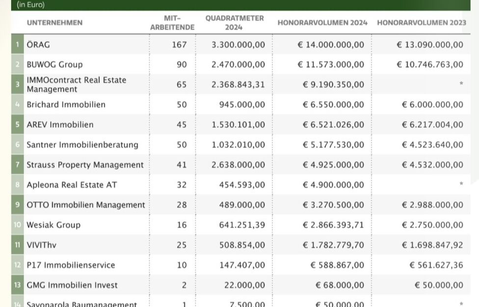 Das renommierte Immobilien Magazin von Immomedien hat auch 2025 das vielbeachtete Hausverwaltungs-Ranking veröffentlicht. Bewertet wurden österreichische Hausverwaltungen nach betreuten Quadratmetern, Honorarvolumen und regionaler Gewichtung.