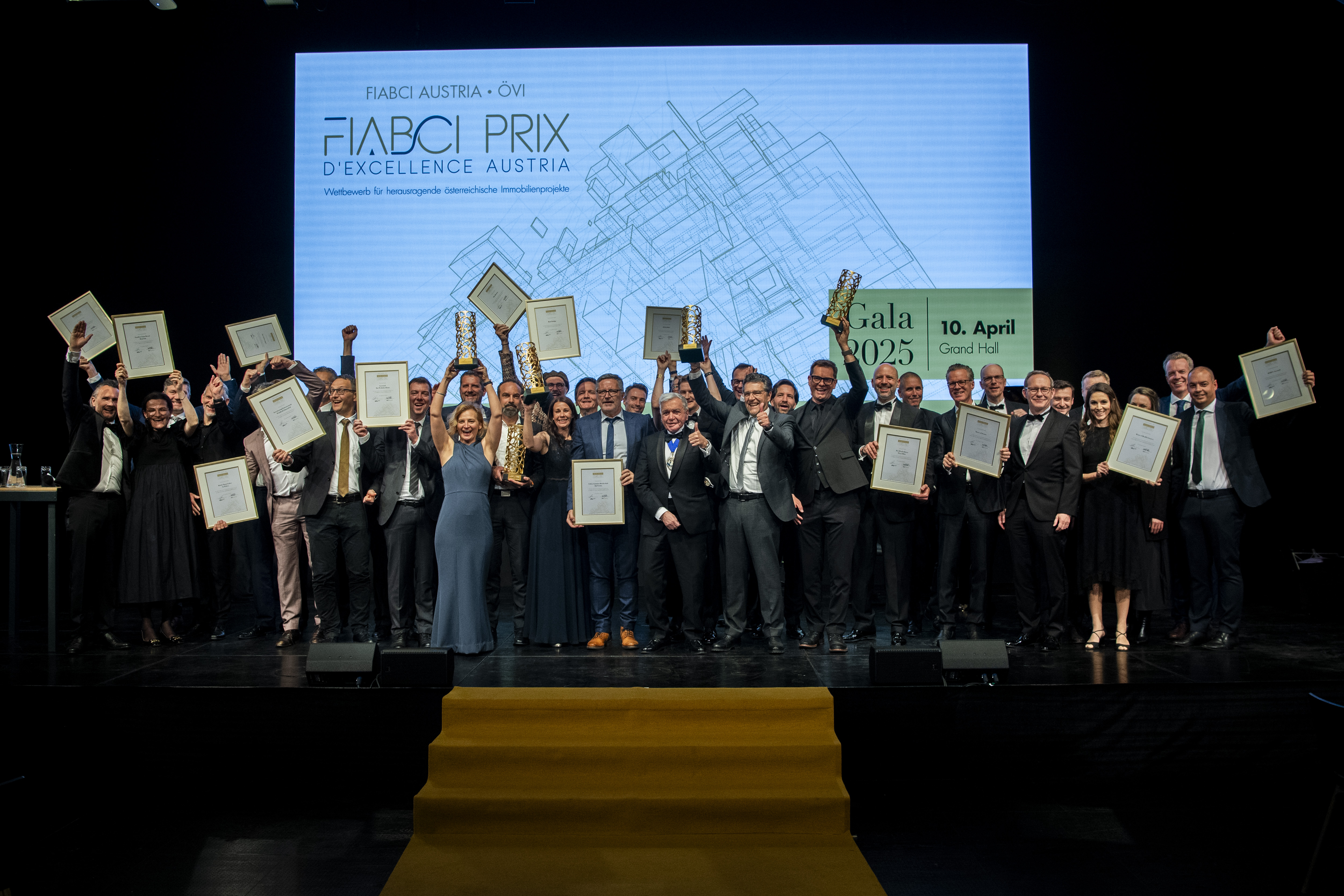 Die Sieger des Fiabci Prix d’Excellence Austria 2024/25 stehen fest. Am 10. April wurden fünf österreichische Immobilienprojekte mit der begehrten Trophäe im Rahmen einer feierlichen Gala in Wien ausgezeichnet. Rund 45 heimische Immobilienprojekte haben sich im Jahr 2024 um den Fiabci Prix d’Excellence Austria beworben, die elfköpfige Jury hatte daraus Anfang Februar fünfzehn Finalisten in fünf Kategorien – Wohnen, Gewerbe, Hotel, Bauen im Bestand und Spezialimmobilien – nominiert.