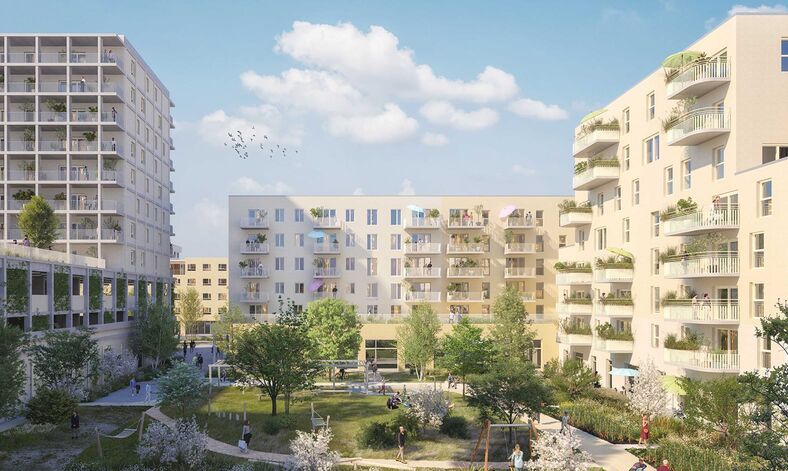 Das HAUSFELD ist ein fruchtbares Stück Land, auf dem die Stadt wächst und gedeiht - ein neuer, urbaner und klimafreundlicher Stadtteil für rund 9.000 Menschen, der Vielfalt, Nachhaltigkeit und modernes Zusammenleben verkörpert. Das HAUSFELD verbindet urbane Dichte mit Freiraum und schafft wertvollen Lebensraum für die Bedürfnisse der Stadtbewohner:innen von morgen. Das Herzstück ist der Albert-Schultz-Park, eine große, zentrale Grünfläche. Der Park ist perfekt zum Entspannen und bietet gleichzeitig einen tollen Ort für Begegnung, Austausch und gemeinsame Aktivitäten. Großer Wert wurde auf eine vielfältige und hochwertige Erdgeschosszone gelegt, die die Vision einer Stadt der kurzen Wege verwirklicht. Einkaufsmöglichkeiten, Cafés, Restaurants und verschiedene Dienstleistungseinrichtungen werden im Quartier ebenso zu finden sein wie eine Volksschule, ein Gymnasium sowie städtische und private Kindergärten.